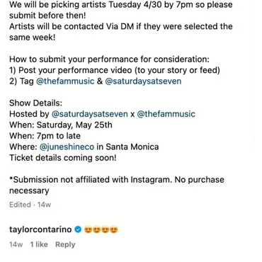 The Solution: To build buzz and drive engagement for an upcoming JuneShine event, I created and launched a social media singing contest that invited emerging artists to compete for a chance to perform live. The campaign was designed to spark organic interaction, encourage user-generated content, and build a community around the brand.